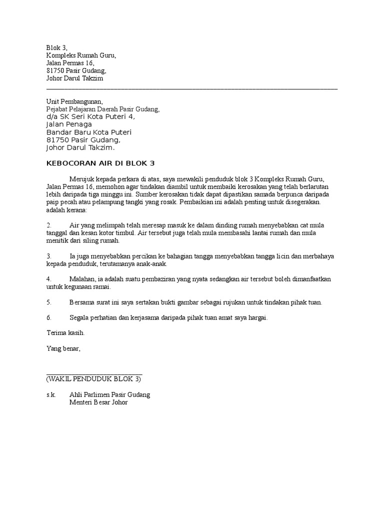 Contoh surat aduan kerosakan by emir khalil. Sebelum kita lanjut ke contoh surat lamaran, ada baiknya kamu membaca kriteria dan tips untuk membuat surat lamaran kerja yang baik dan benar. Blok 3, kompleks rumah guru, jalan permas 16, 81750 pasir gudang, johor darul takzim unit pembangunan, pejabat pelajaran daerah pasir gudang, d a sk seri kota puteri 4, jalan penaga bandar baru kota puteri 81750 pasir gudang, johor darul takzim. Blok 3, kompleks rumah guru, jalan permas 16, 81750 pasir gudang, johor darul takzim unit pembangunan, pejabat pelajaran daerah pasir gudang, d a sk seri kota puteri 4, jalan penaga bandar baru kota puteri 81750 pasir gudang, johor darul takzim. Contoh surat bnn / contoh surat lamaran kerja di bnn non pns : Contoh surat keberatan dari pihak ketiga terbaru | kali ini penulis kembali hadir untuk memberikan informasi seputar surat menyurat. Panitia pengajian akbar daarul islami desa. Lantas anda mula mencari contoh surat aduan yang membawa anda terus ke sini. Rayuan kemasukan ke sekolah berasrama penuh atau mrsm, derma mahupun surat jemputan: Contoh surat aduan pembuangan sampah. Contoh surat laporan aduan kerosakan. Contoh surat pengaduan karena kerusakan barang. Contoh surat pemberitahuan kegiatan sekolah.