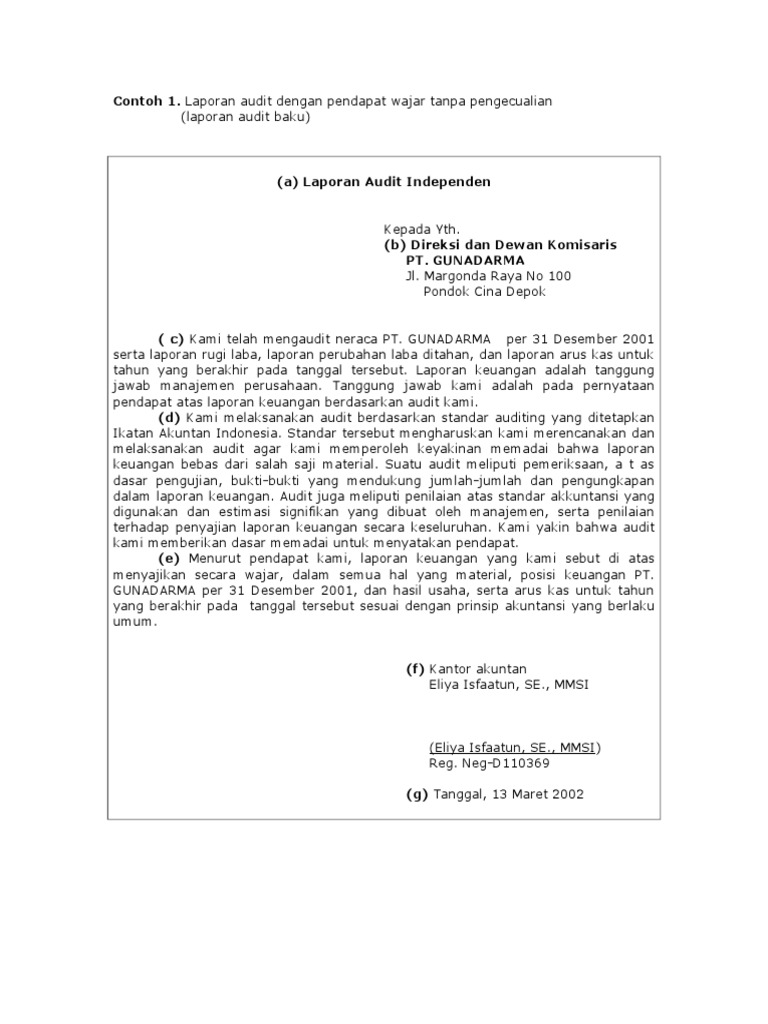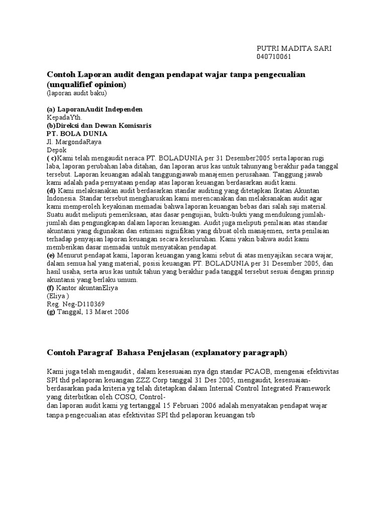 Contoh Audit Plan Dan Instrumen Audit from imgv2-1-f.scribdassets.com Produk akhir audit adalah laporan termasuk penemuan dan cadangan. Analisis laporan audit pt kimia farma 1. 211 menentukan samaada wujud sistem kawalan dalaman yang berkesan terhadap pengurusan fail. Kabiro akreditasi dan audit mutu ka. Laporan auditor yang terdiri dari 3 paragraf dengan 7 bagian standar. Laporan audit dan laporan audit adalah dokumen yang mencerminkan perjalanan audit dan pendapat objektif yang dirumuskan apabila selesai. Download kumpulan contoh lengkap mengenai contoh laporan internal audit secara gratis disini termasuk contoh laporan pkl rekam medis, contoh laporan prakerin nkpi, contoh laporan pkl jurusan multimedia, dan masih contoh laporan hasil audit internal iso kumpulan contoh laporan. Internal contoh laporan audit dalaman.